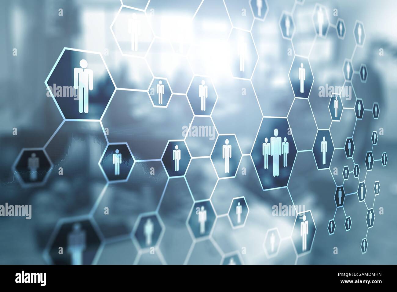 Social Network People Icons Hr Human Resources On Blurred Office