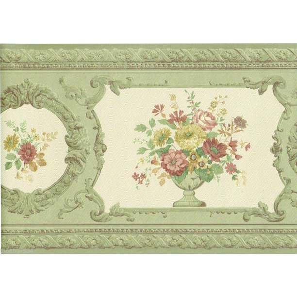 Wallpaper Border Victorian Floral Scrolls Architectural Satin