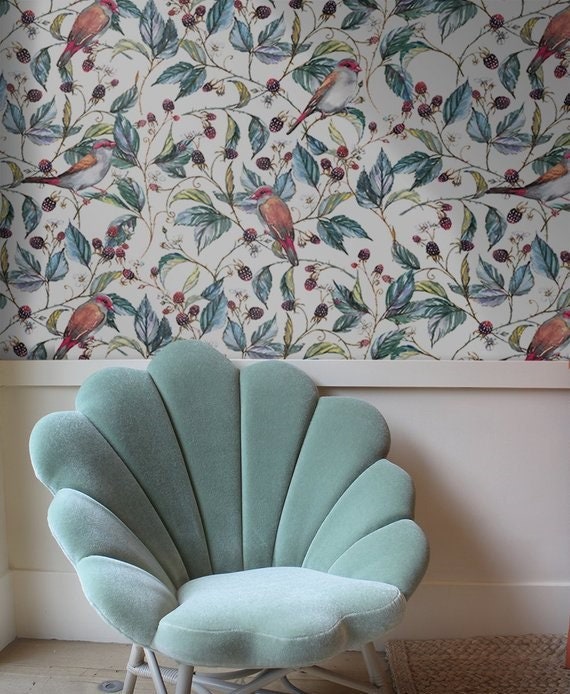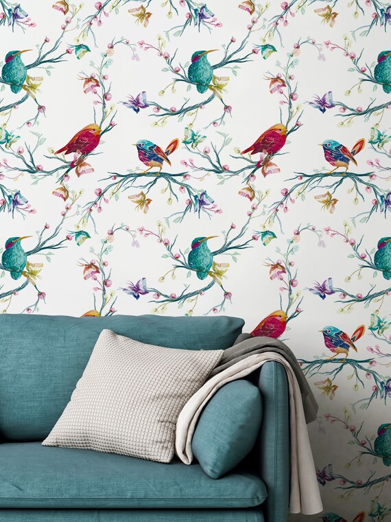 Vintage Birds Wallpaper Watercolor Birds Wall Mural Peel And Etsy