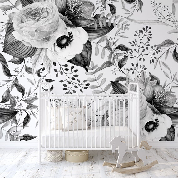 Vintage Black And White Floral Wallpaper Peel And Stick Etsy