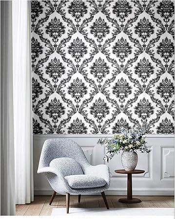 Blooming Wall Vintage Vinyl Black Damasks Wallpaper Priced In