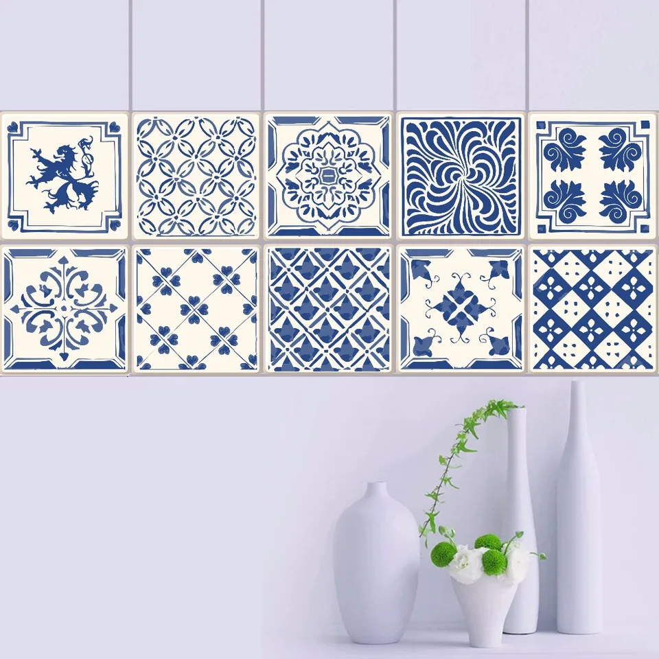 Vintage Blue And White Porcelain Tiles Pvc Waterproof Self