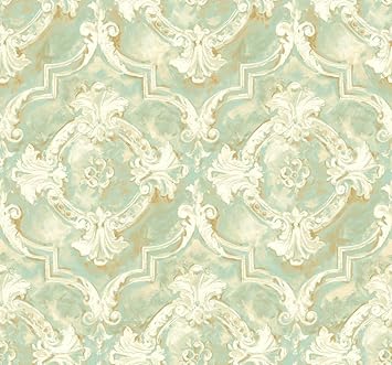 Victorian Damask Wallpaper Blue Gold Green Cream Vintage Style