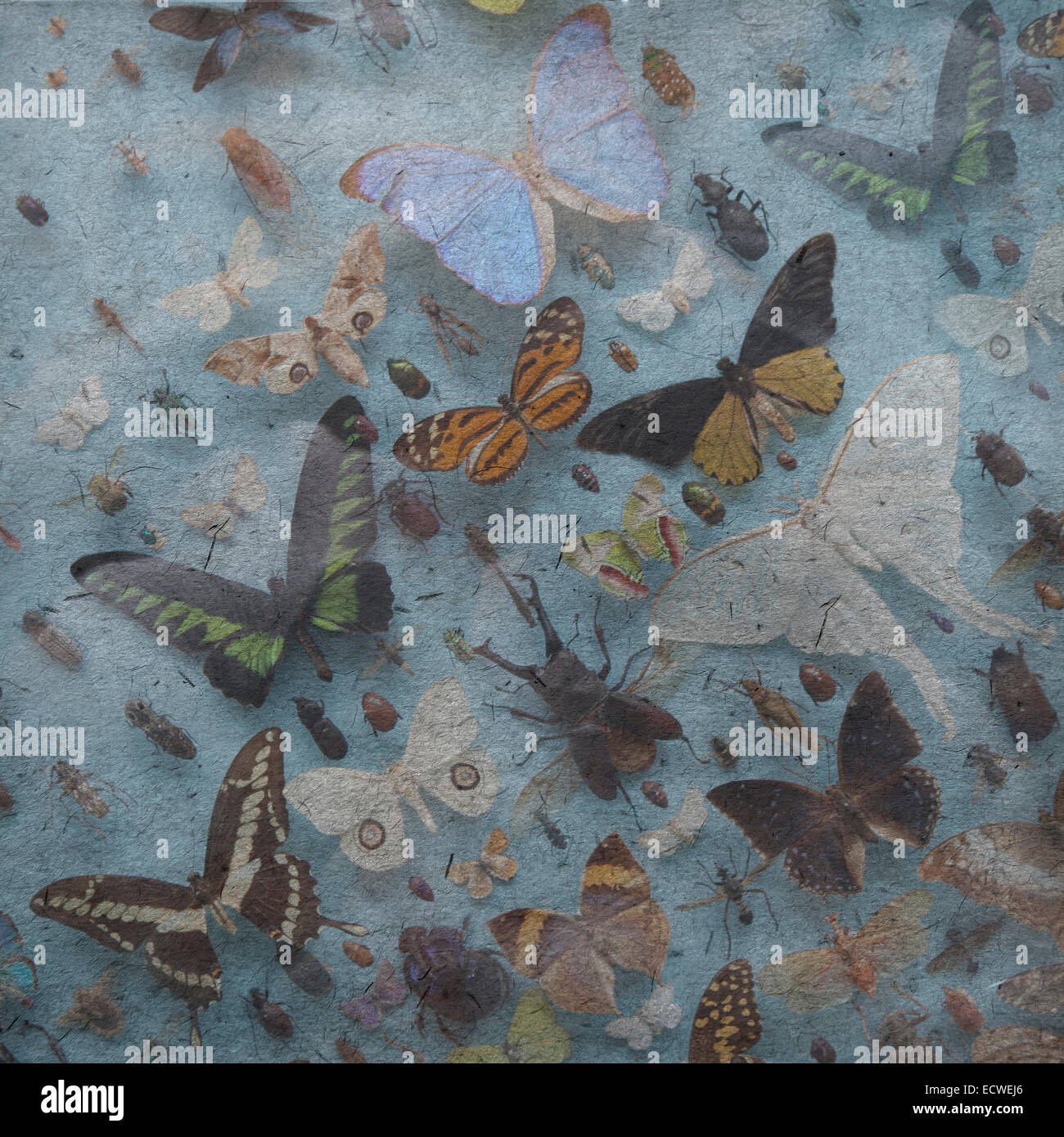 Vintage Wallpaper Background With Butterfly Beetle Bug Stock