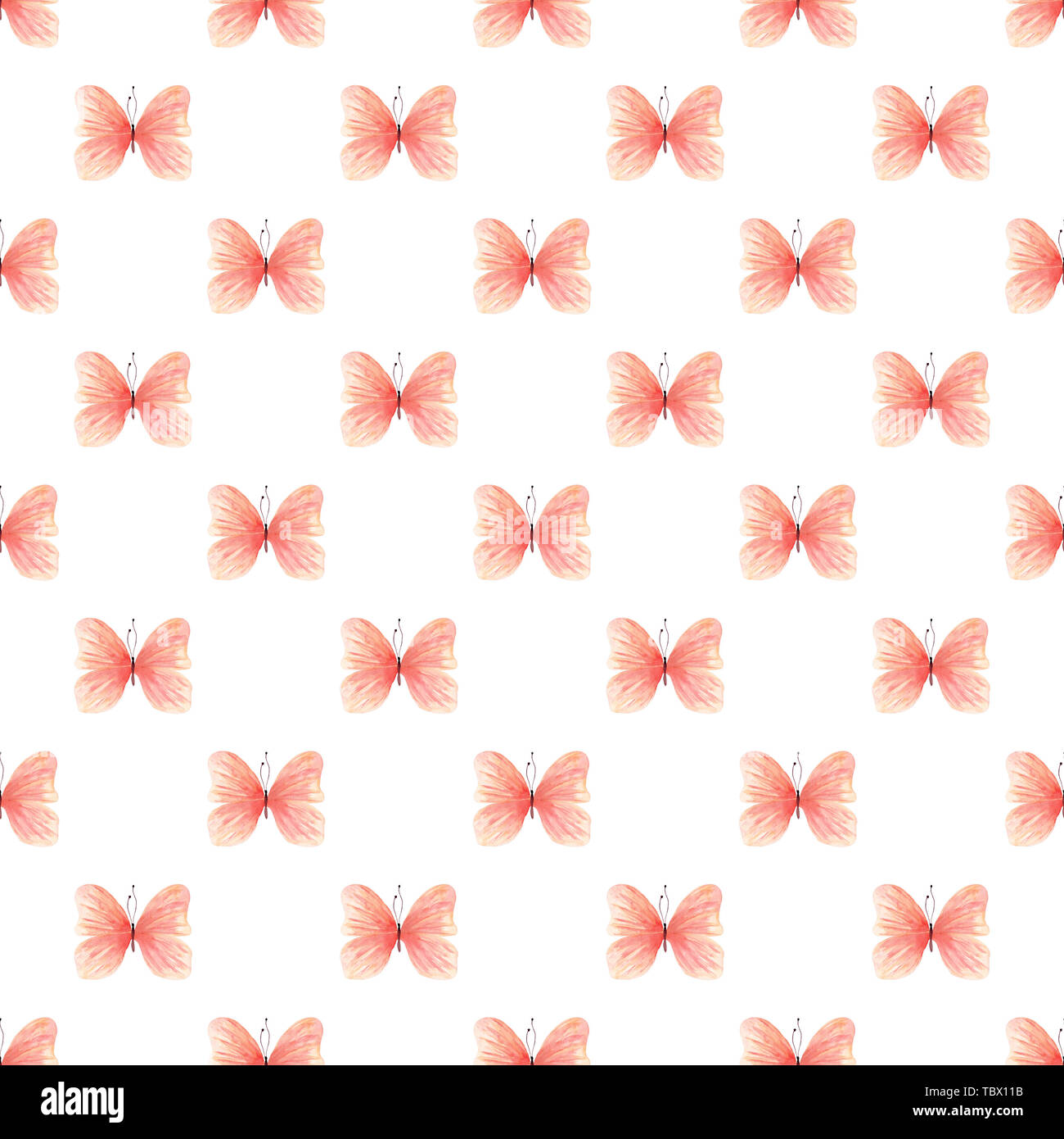 Light Red Butterflies Seamless Watercolor Pattern Elegant Flying