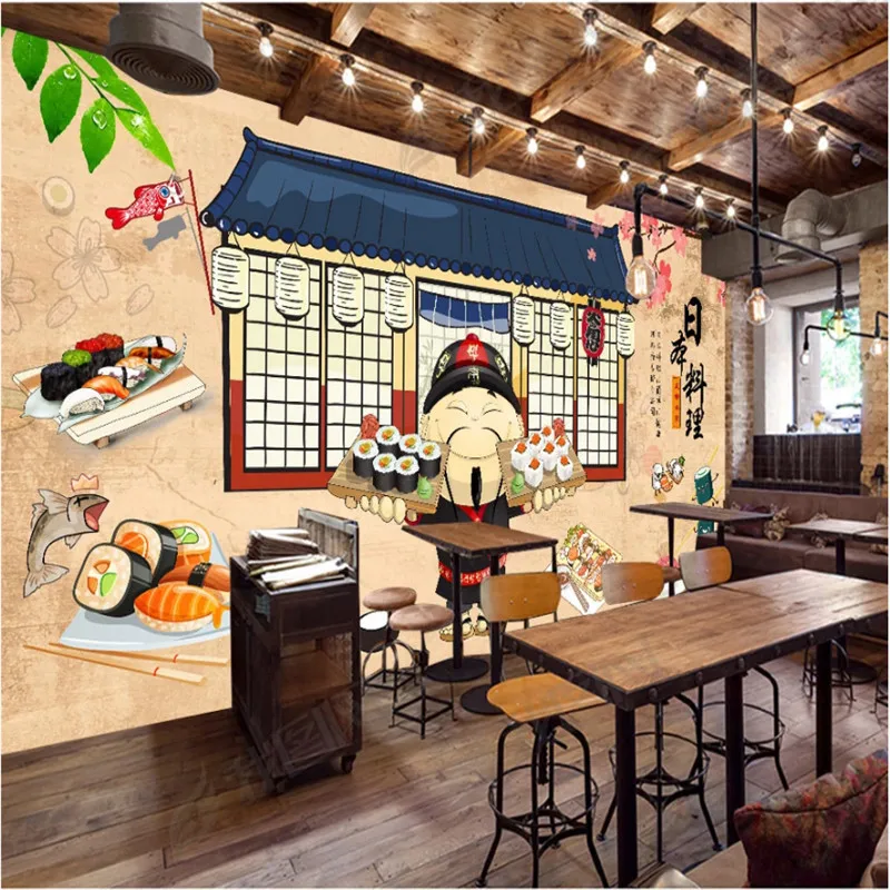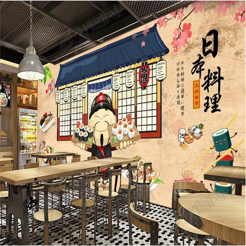 Vintage Cartoon Japanese Style 3d Wall Paper Japanese Sushi