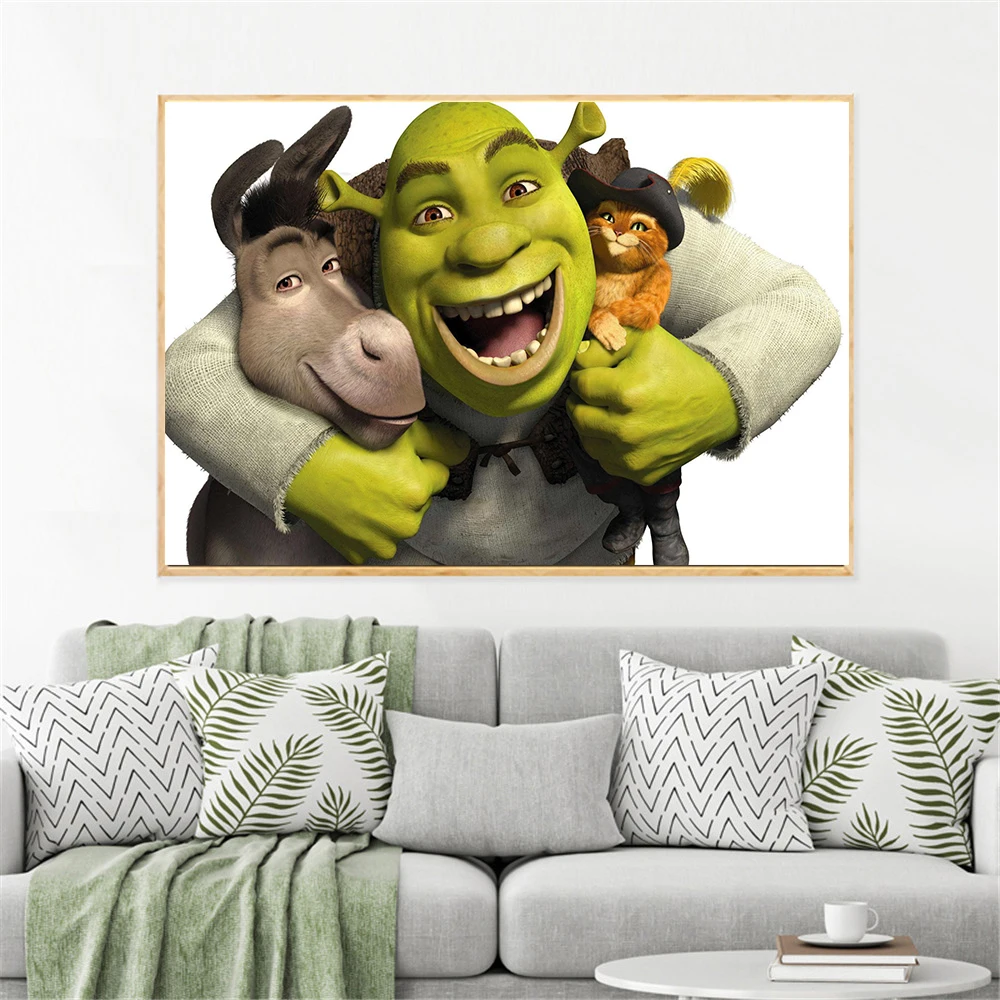 Vintage Cartoon Canvas Painting Anime Shrek Poster Cafe Creative