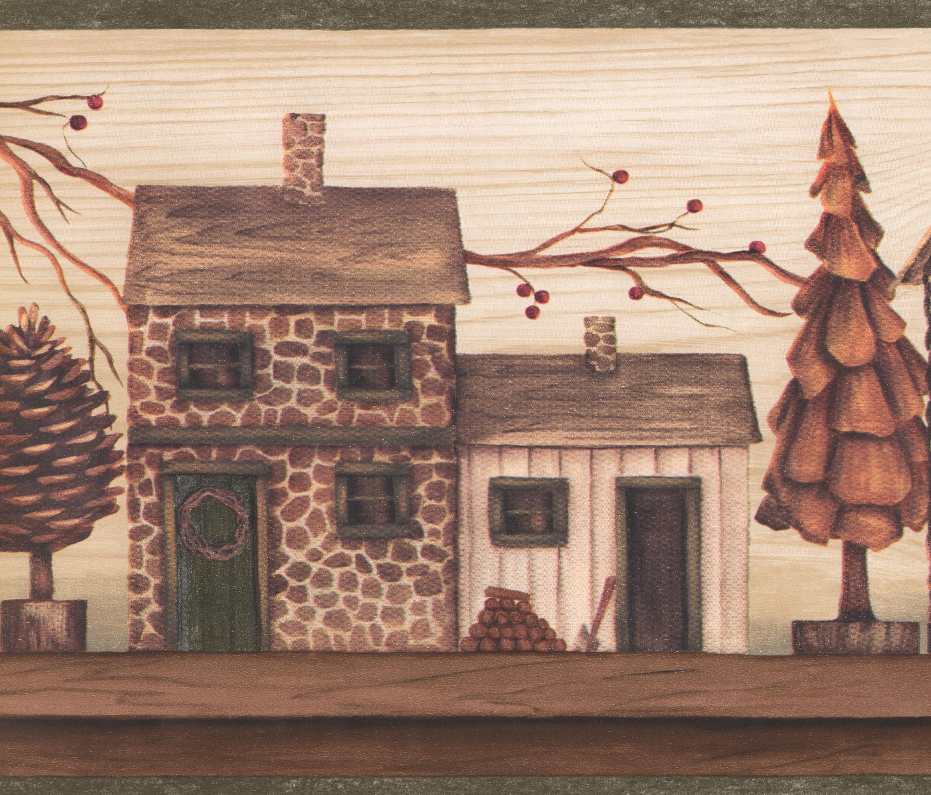 Cartoon Vintage Street Brown Beige Wallpaper Border Retro Design