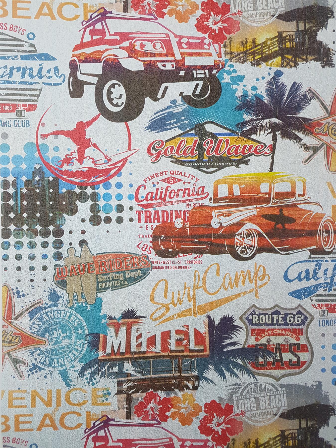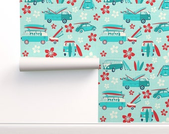 Vintage surf wallpaper murals with classic woodie station wagons and surf scenes evoke a sense of nostalgia and timelessness. Summer images pictures. With such a variety of images and styles surf wallpaper murals can be incorporated in nearly any interior space.