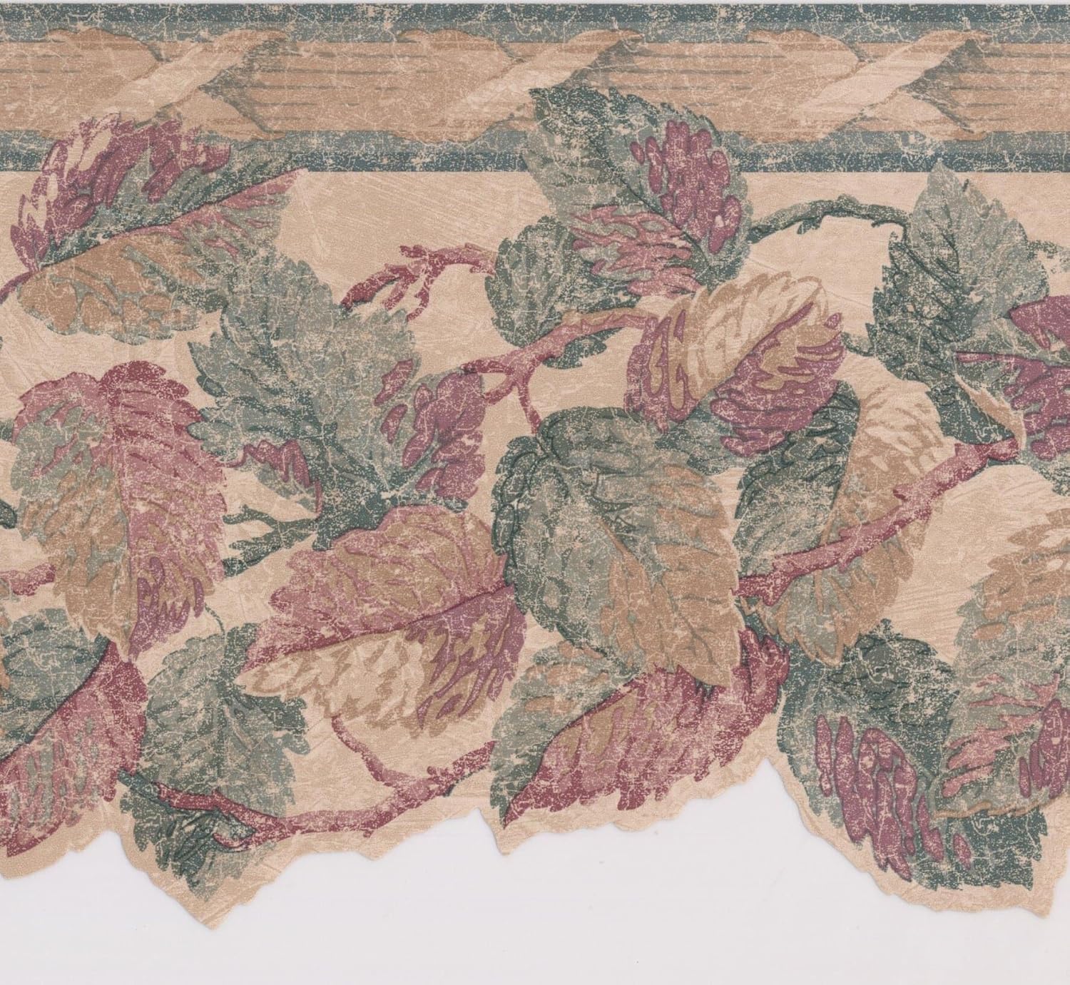 Red Green Brown Leaves Vintage Wallpaper Border Retro Design Roll