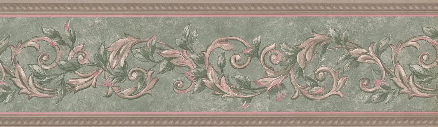 Mint Green Vintage Wallpaper Border Roses Ch7154b Free Ship