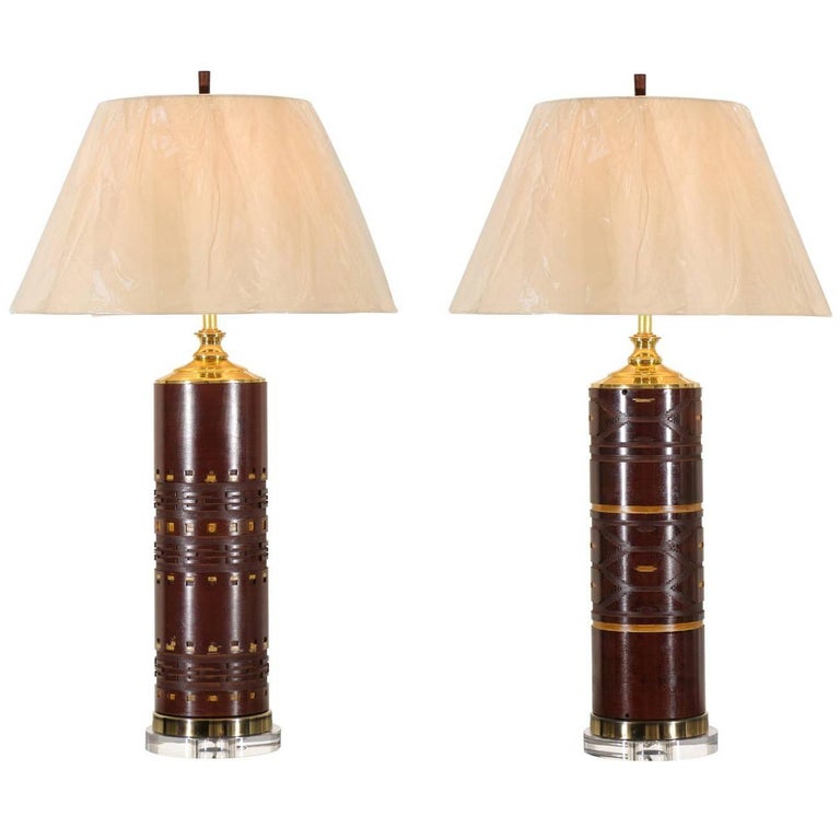 Handsome Restored Pair Of Vintage Wallpaper Rollers As Lamps For