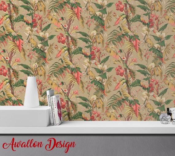 Vintage Tropical Banana Wallpaper Birds Wallpaper Easy Etsy