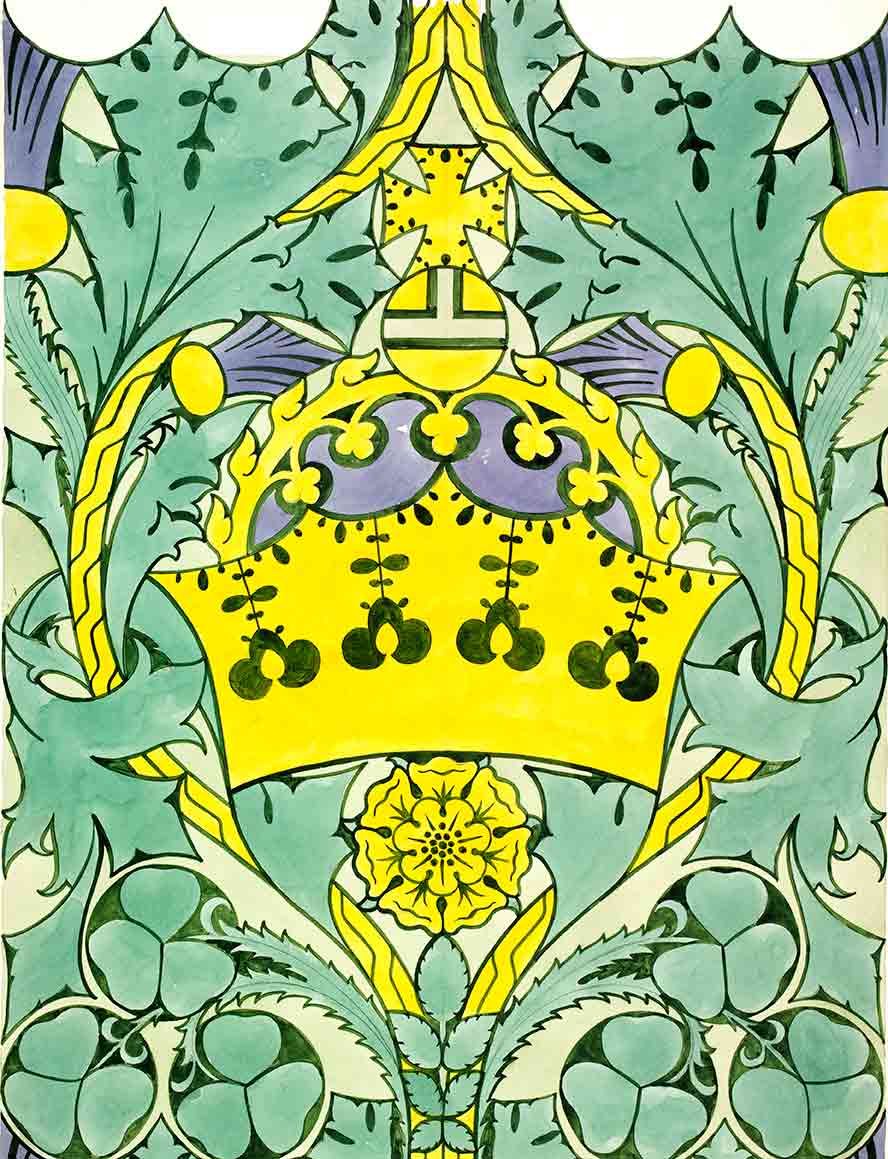 Crown Rose Thistle Shamrock And Acanthus Wallpaper Design