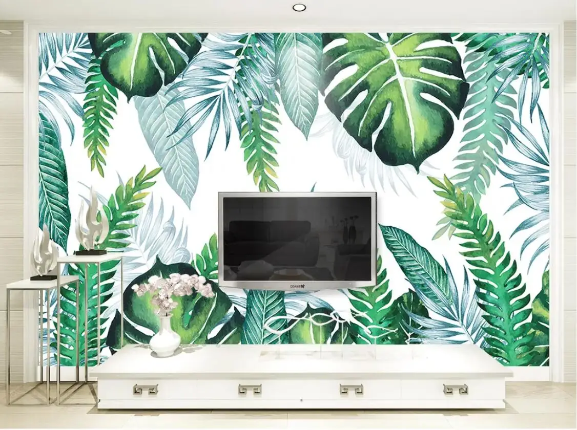 Nordic Tropical Leaf Wallpaper Green Leaf Wall Mural 3d For Living