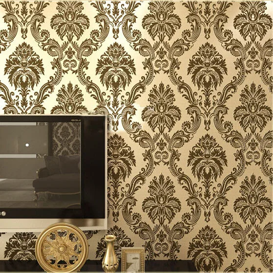 European Damask Wallpaper Pvc Flocking Floral Wall Paper Living