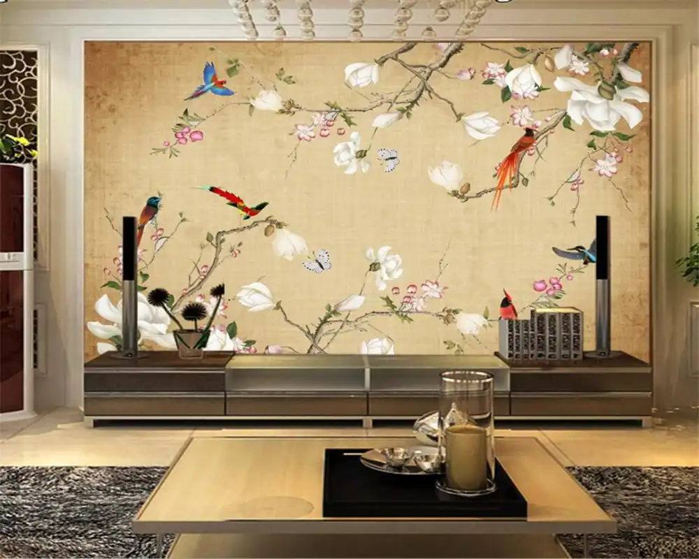 Buy 3d Wallpaper 3d Chinese Hand Painted Flowers Bird Pattern