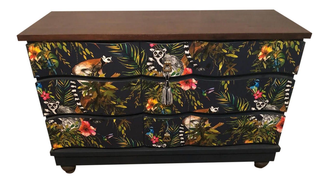 Mid Century Dresser With Exotic Wallpaper Detail Chairish