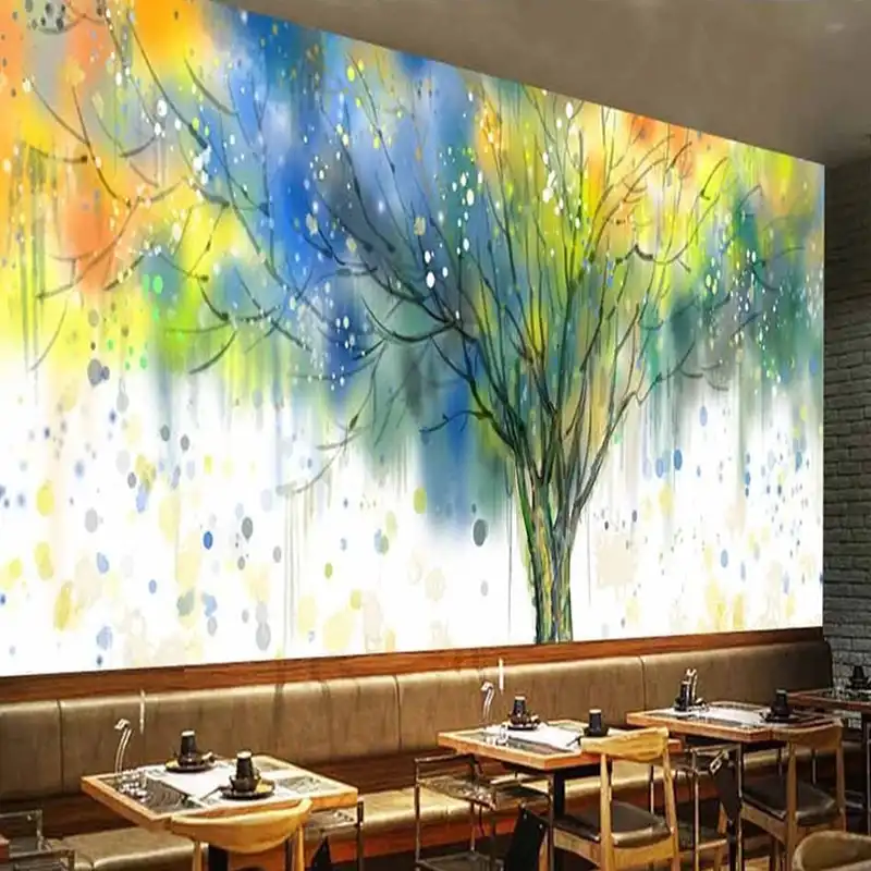 Custom Wallpaper 3d Colorful Hand Painted Abstract Tree Murals
