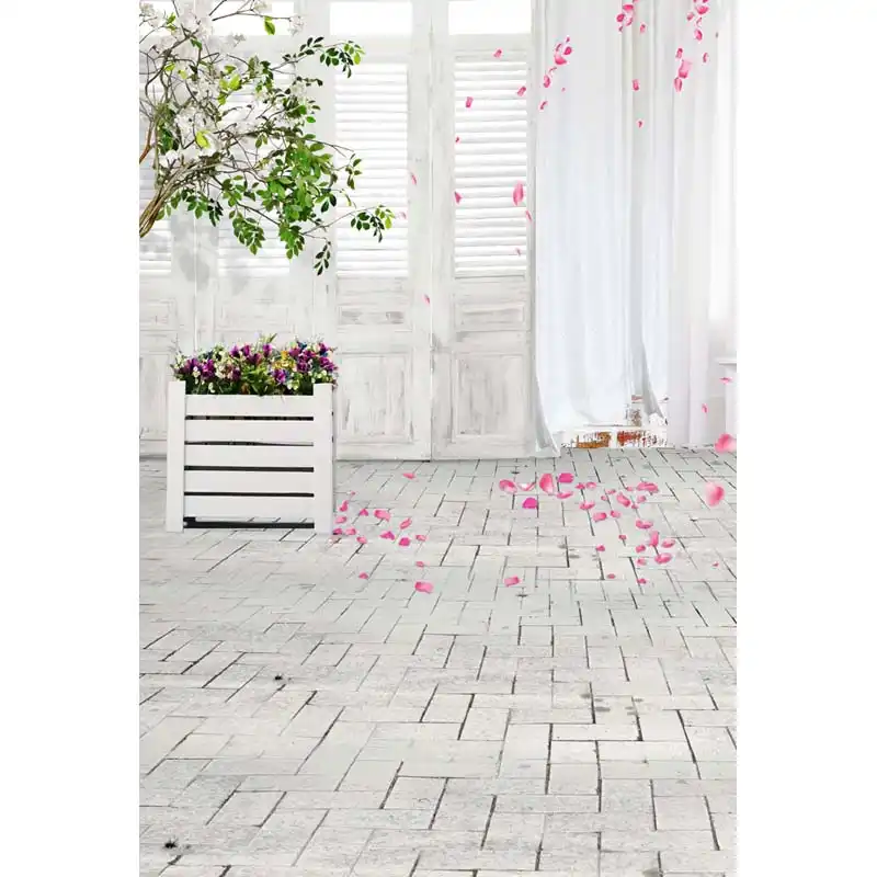 White Gray Brick Wall Wood Floor Photography Studio Backdrop