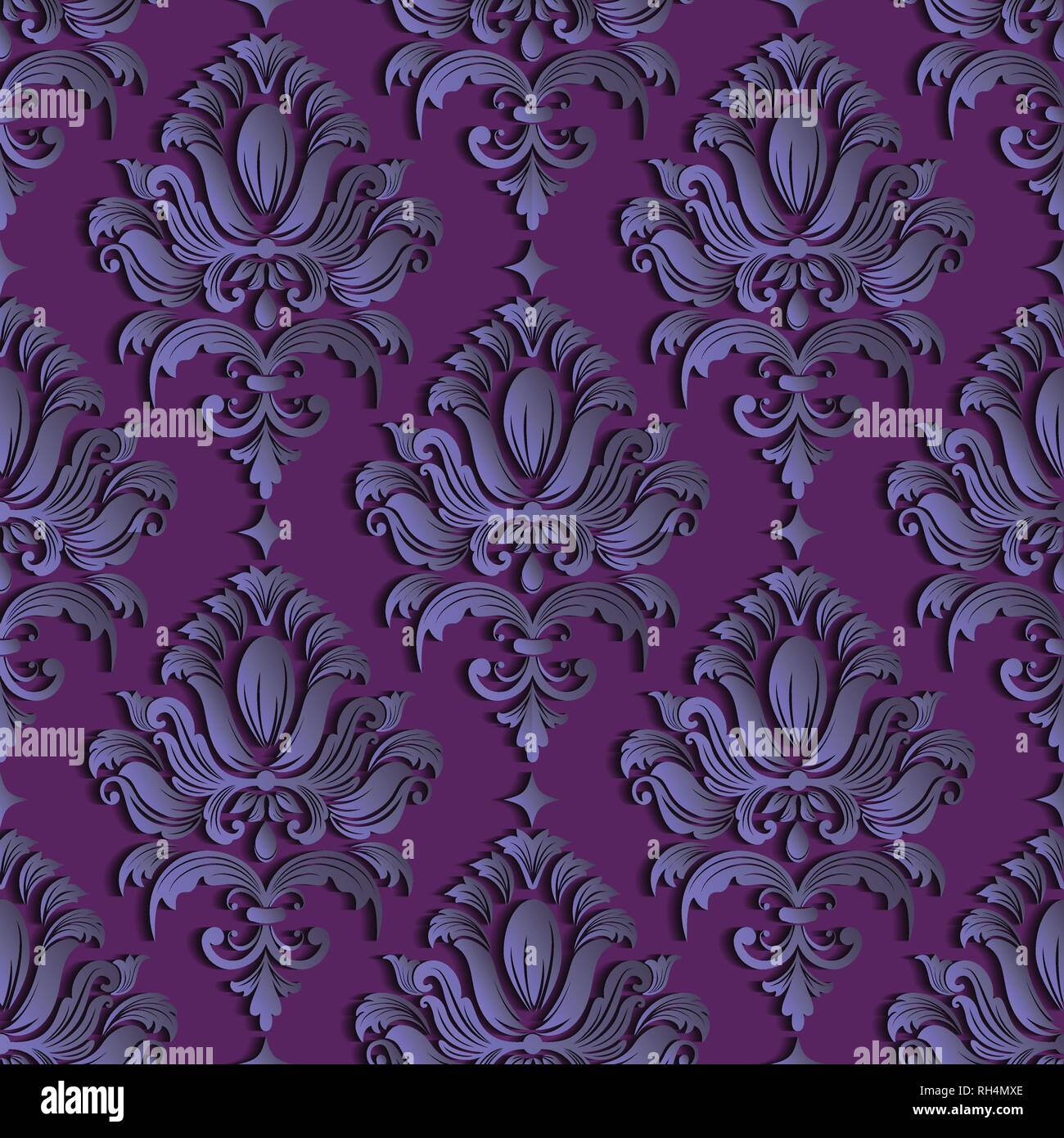 3d Dark Paper Cut Vector Damask Seamless Pattern Elegant Luxury