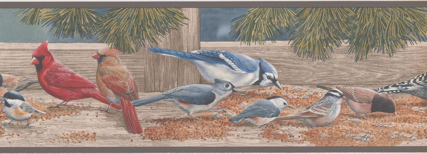Winter Birds Wallpaper Border Cardinals Blue Jays Woodpeckers