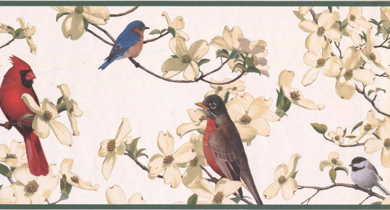 Birds Cardinal Blue Bird Greed Edges Wide 6 1 2 Wallpaper Wall