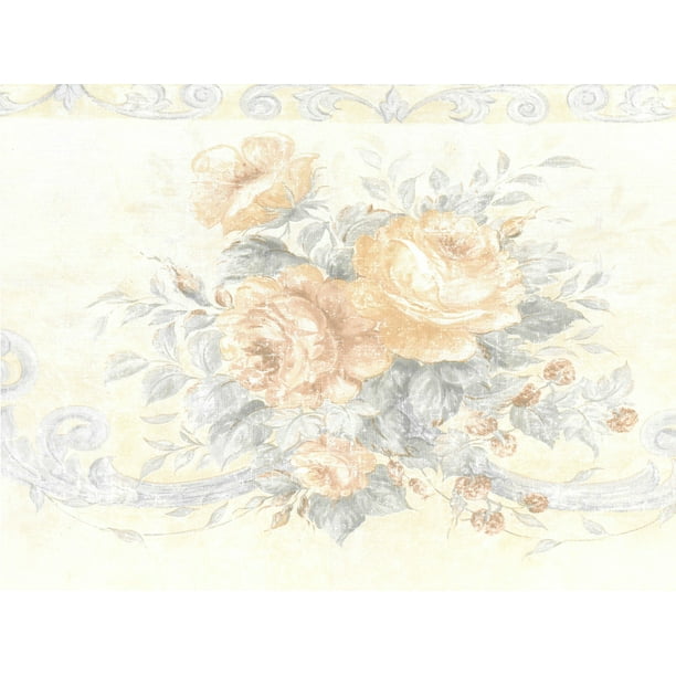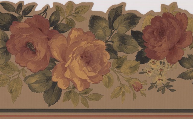 Yellow Brown Blooming Roses Light Taupe Wallpaper Border Floral Design Roll Traditional Wallpaper By Euro Home Decor