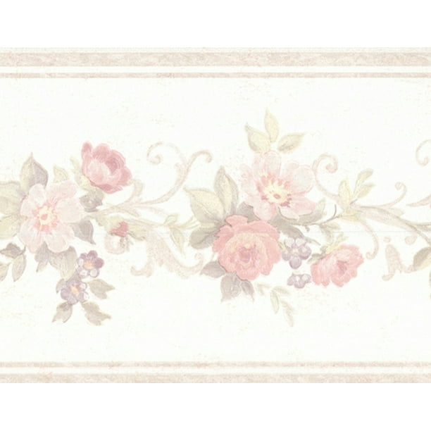 Prepasted Wallpaper Border Floral Beige Pink Blooming Roses On Vine Wall Border Retro Design 15 Ft X 5 25 In 4 57m X 13 34cm Walmart Com Walmart Com
