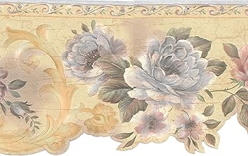 Dundee Deco Bd6168 Prepasted Wallpaper Border Floral Green Yellow Purple Flowers Vines Scalloped Wall Border Retro Design 15 Ft X 6 5 In 4 57m X 16 51cm Amazon Com