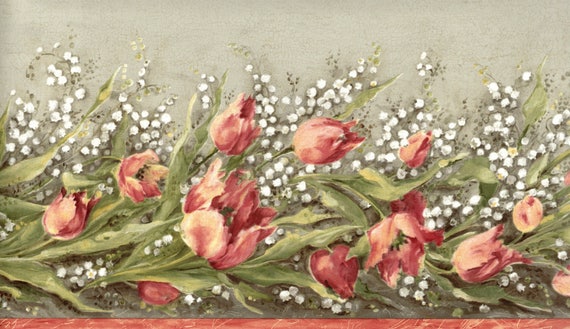 Floral Wallpaper Border Flower Wallpaper Painted Tulip Green Etsy