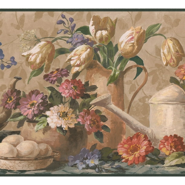 Amazon Com Floral Gardening Wallpaper Border Flowers For Kitchen