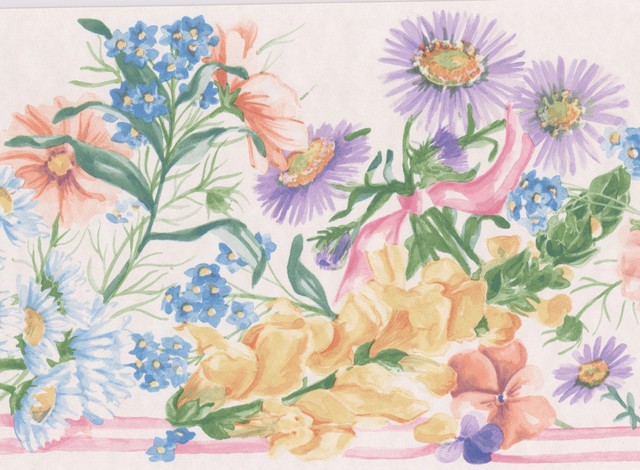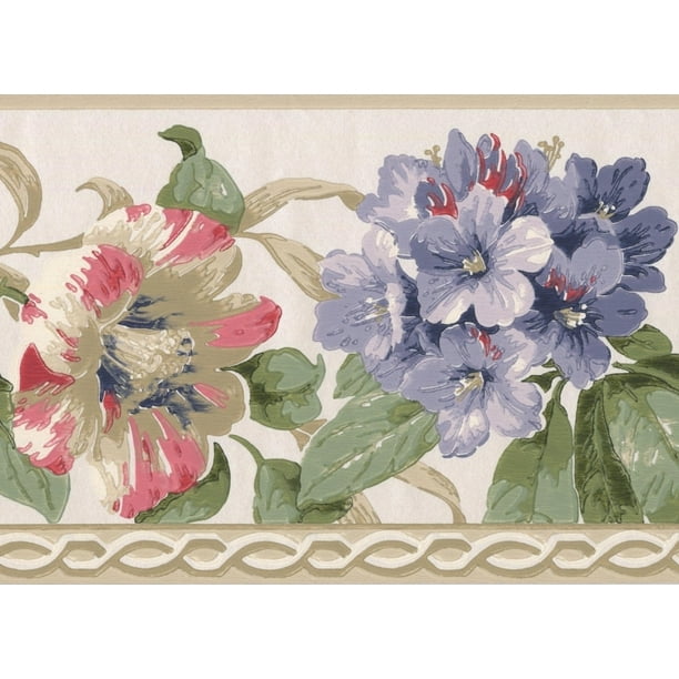 Pink Purple Flowers Green White Ba4626b Wallpaper Border For Walls