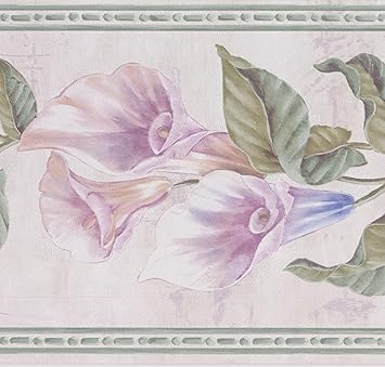 Wallpaper Border Pink Purple Flowers Green Leaves Alabaster