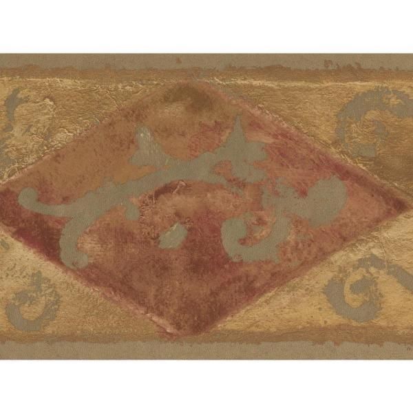 Brewster Honey Gold Burgundy Green Scroll Wallpaper Border