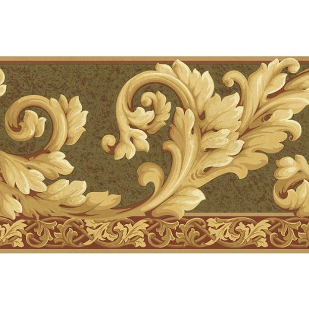 Wallpaper Border Gold Acanthus Scroll On Green Faux Ebay