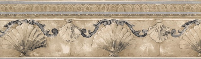 Silver Gold Stone Sea Shell Molding Wallpaper Border