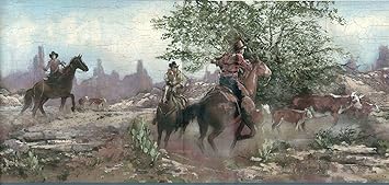 Cowboy Bronco Rodeo Wallpaper Border Green Edge Amazon Com