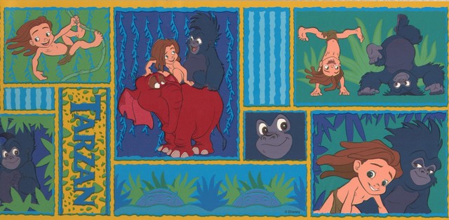 Tarzan With Animals Disney Cartoon Wallpaper Border Kids Baby Room