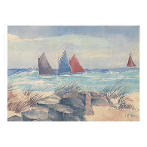 Green Yellow Red Blue Orange Sailboats Regatta Lighthouse Nautical