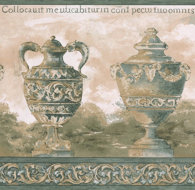 Ancient Ornated Jugs Pottery Reddish Beige Wide Wallpaper Border