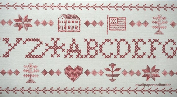 Primitive Country Wallpaper Border Cross Stitch Letters House Etsy