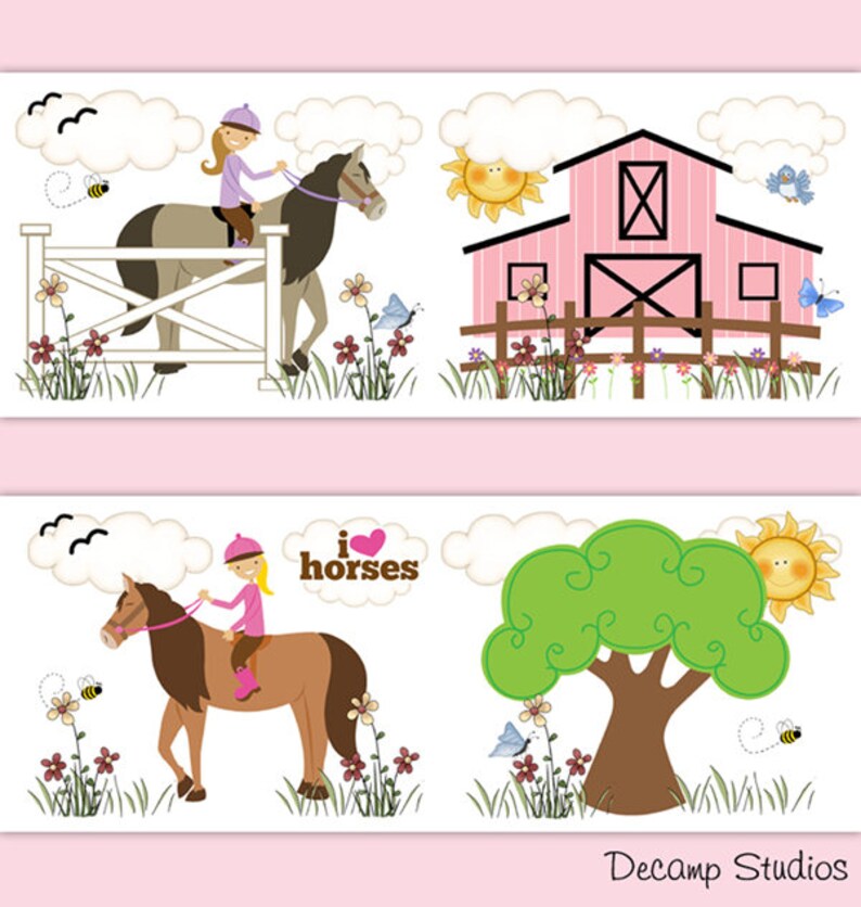 Girl Horse Decor Wallpaper Border Wall Art Decals Kids Western Etsy