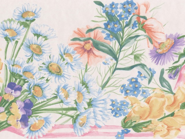 Blue Purple Yellow Pink Meadow Flowers Country Wallpaper Border