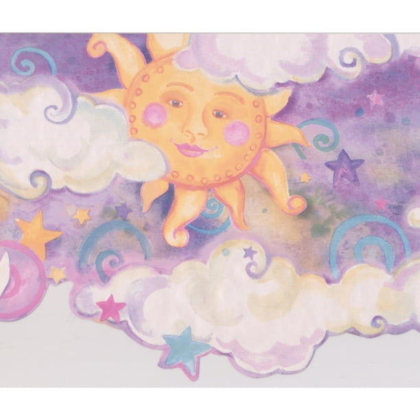 Purple Pink Teal Yellow Brown Flowers White Kids Wallpaper Border Retro Design Roll 15 X 9 Amazon Com