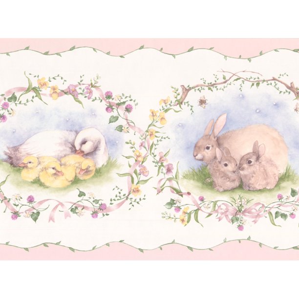 Wallpaper Border Retro Rabbit Duck Sheep White Animal Wall