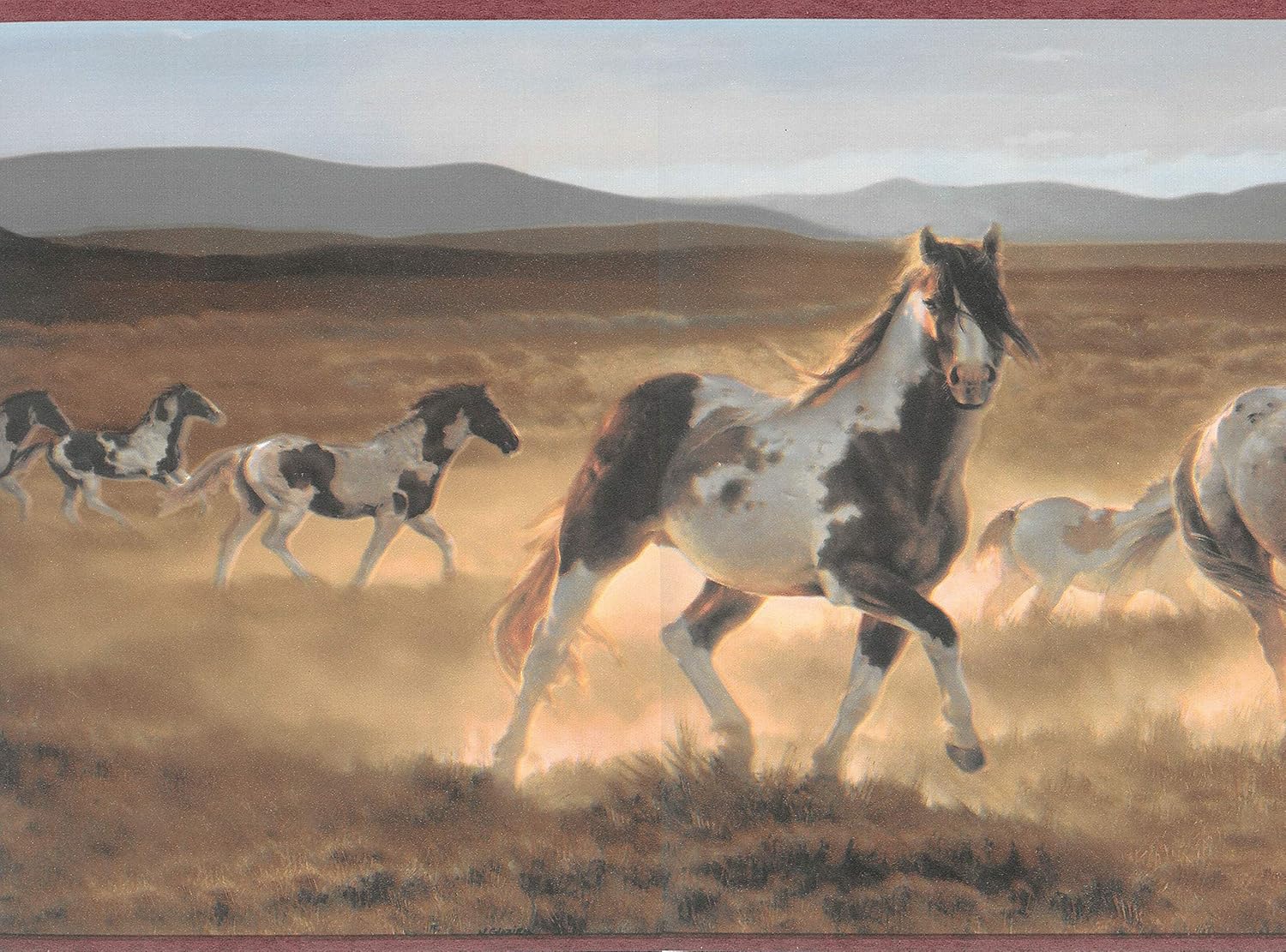 Wallpaper Border Wild Horses Stampede Ranch Country Western Paint