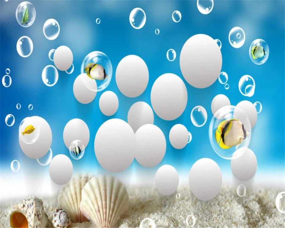 Custom Wallpaper Bubble Seashell Blue Ocean World Kids Room Decor