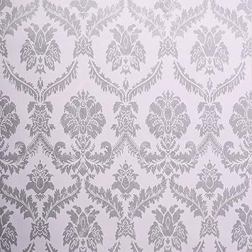 Amazon Com Sicohome Wallpaper 21 8 Yard Silver Damask Removable