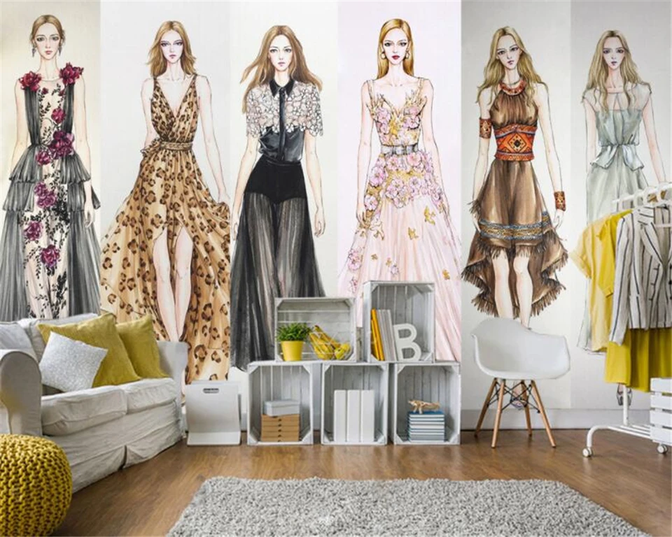 Beibehang Custom Wallpaper Mural Fashion Girl Clothes Shop Barber